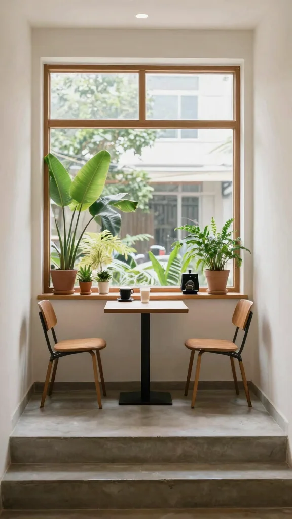 Plants like succulents, ferns, and even herbs can add freshness to your coffee nook.