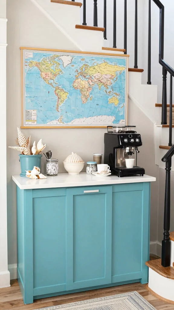 Do you love the charm of nostalgia? A vintage coffee and tea corner can make your under-stairs area feel special every day. Picture a quaint side table adorned with antique teapots and colorful mugs, creating a delightful atmosphere.