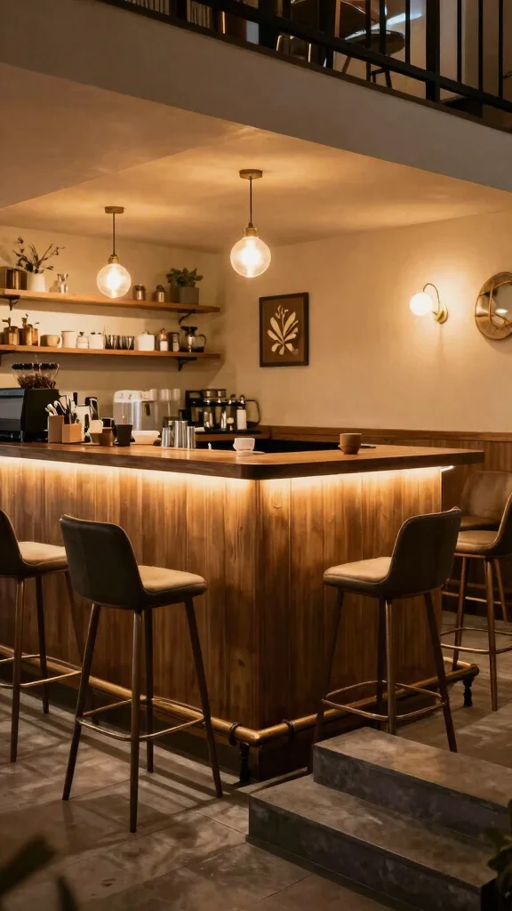 The right lighting can enhance your coffee bar’s ambiance. Consider adding task lighting, like under-shelf LEDs, to illuminate your coffee area without taking up valuable space. If your coffee nook is cozy, think about adding a small lamp or string lights for a warm touch.