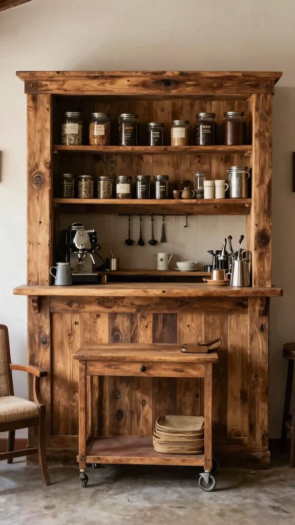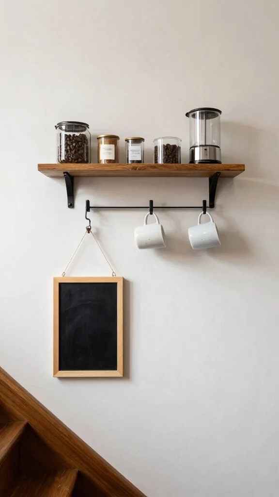 Looking to add warmth and character to your coffee bar? A rustic wood theme can turn that under-stairs area into a cozy retreat. Imagine reclaimed wood shelves and vintage coffee accessories bringing your space to life.