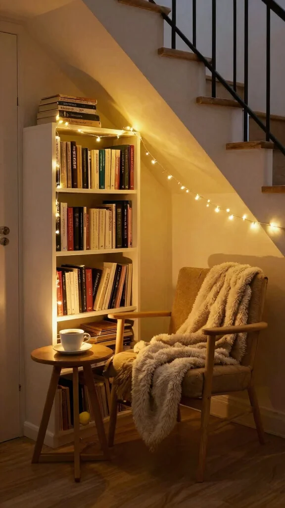 Warm lighting and a curated selection of books can elevate this space into your personal sanctuary.
