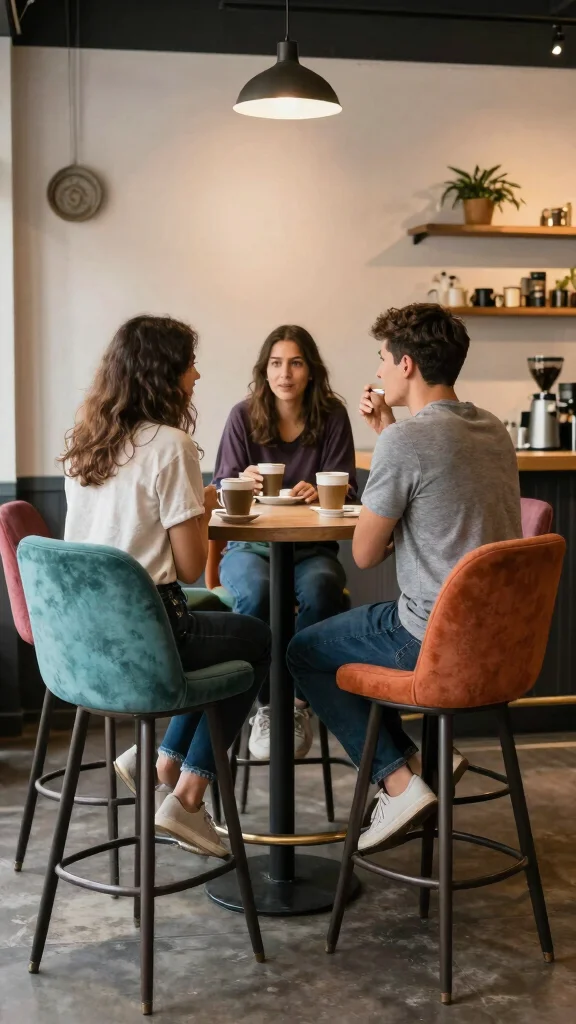 – Opt for high-back stools that provide comfort for long chats.