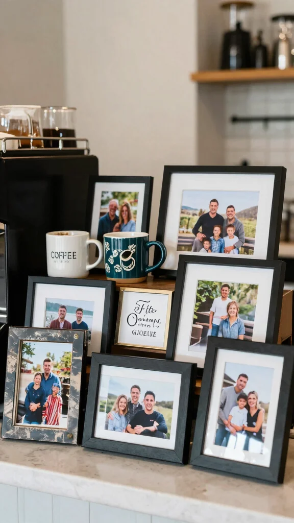 – Use framed photos of family coffee moments or travels as decor.