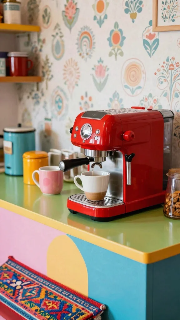 Brighten your coffee bar with vibrant colors that inject personality and energy into the space. A bold accent can transform even the smallest kitchen into a lively area filled with creativity. Consider a striking coffee maker or a collection of colorful mugs that catch the eye and create a joyful atmosphere.