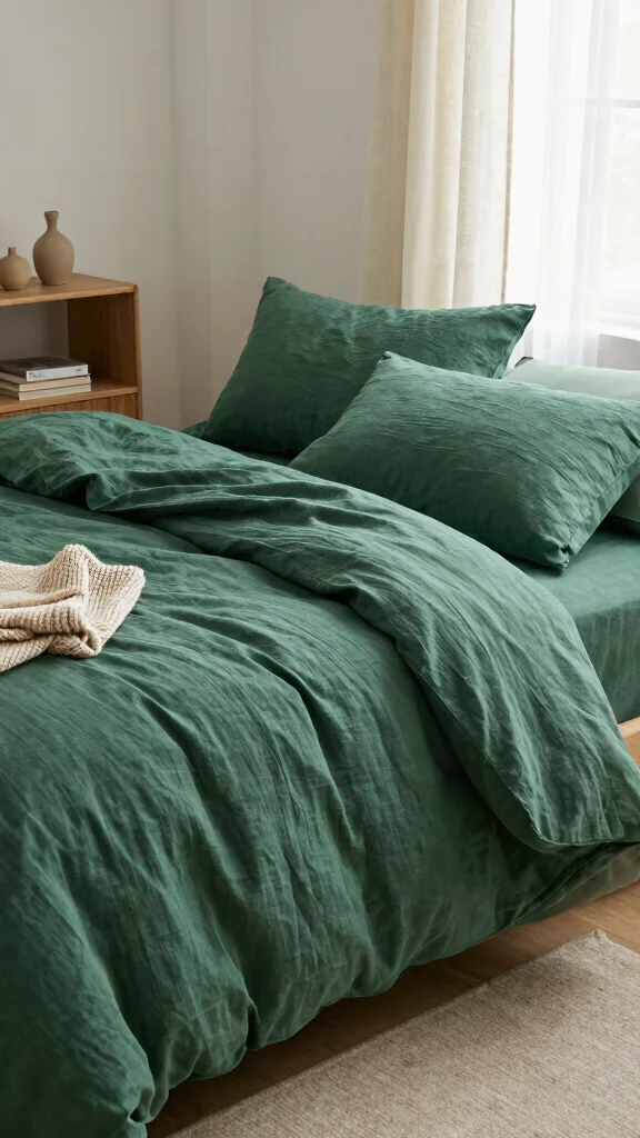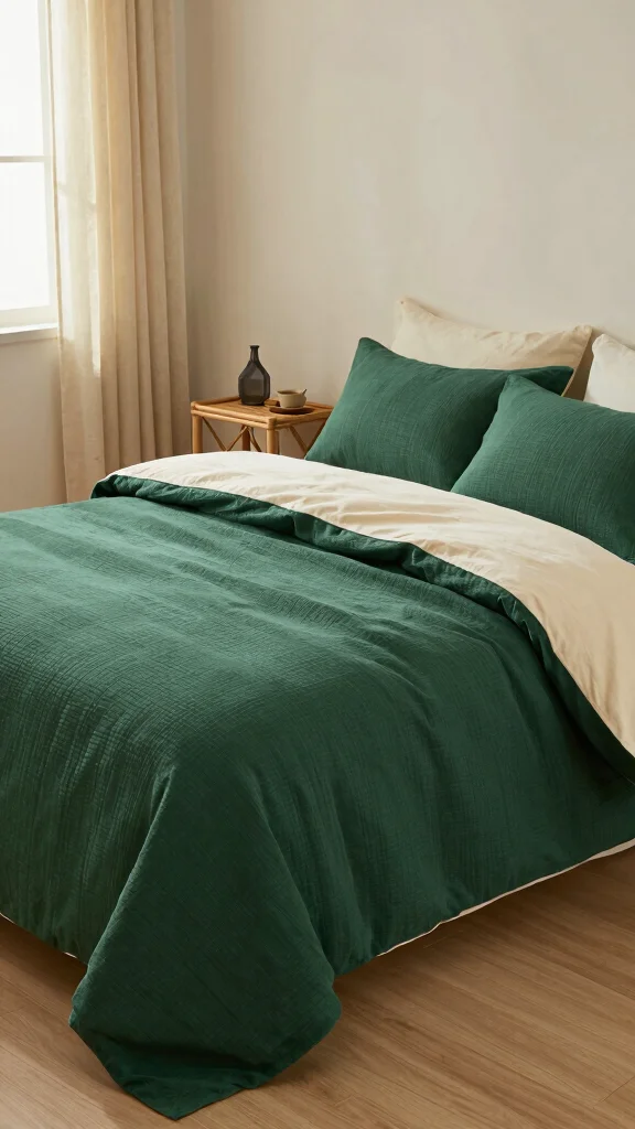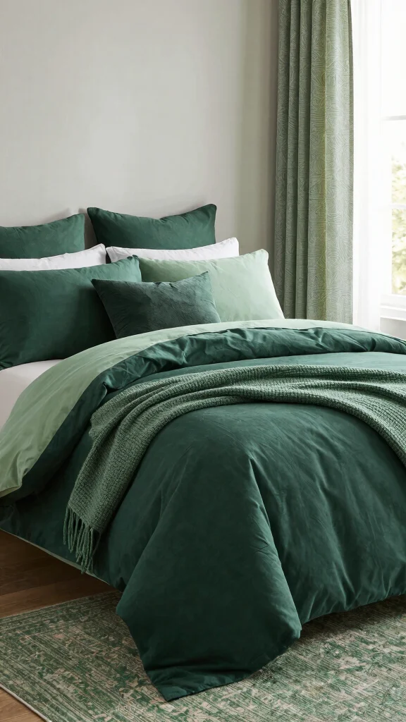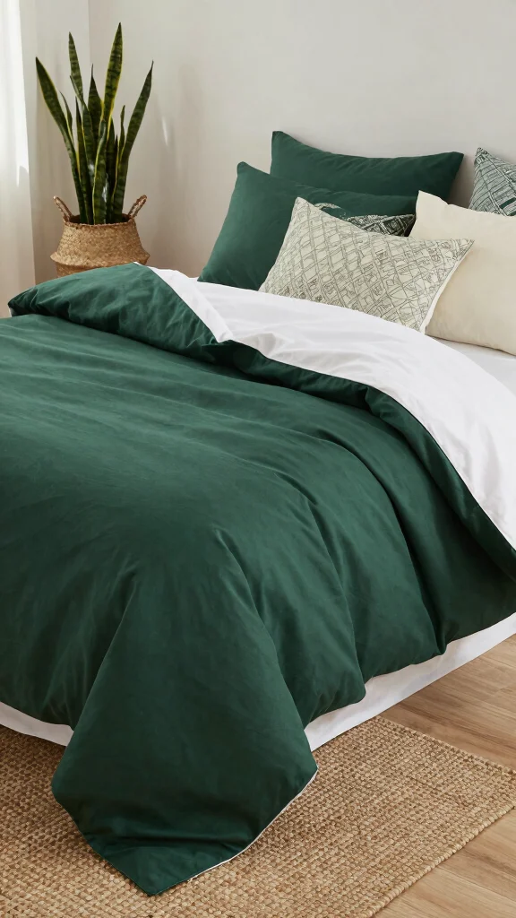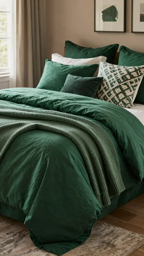 – Pair dark green bedding with white or neutral sheets for contrast.