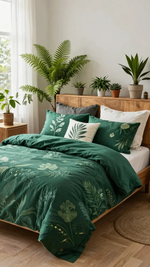 Look for bedding that showcases deep green hues while emphasizing natural materials. Consider different textures; for example, a soft linen duvet with a slightly crinkled effect adds delightful depth to your bedding. Combining this with cotton or bamboo sheets ensures a luxurious feel that aligns with your sustainable values.