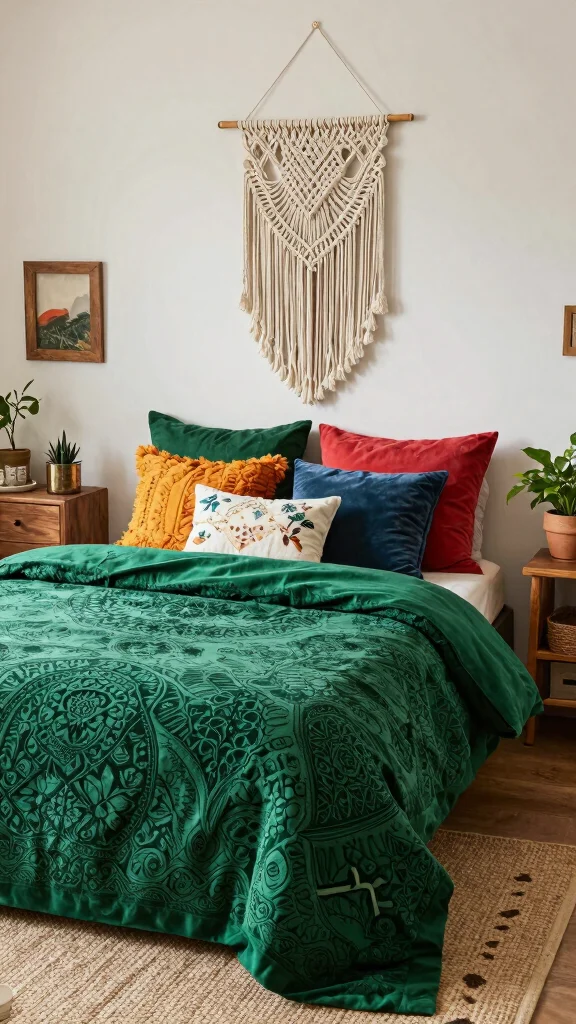 6. Bohemian Dreams with Deep Green Bedding