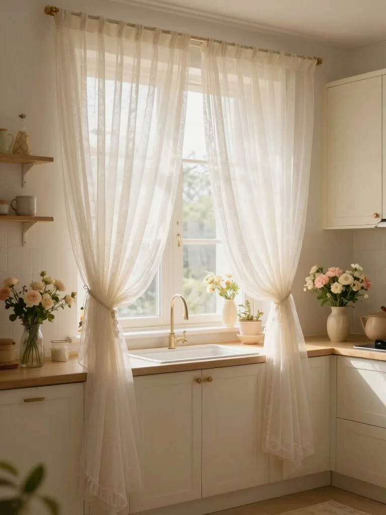 Sheer curtains are an excellent way to keep your kitchen open and inviting, enhancing its overall charm.