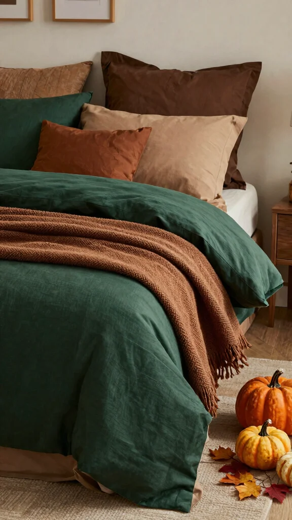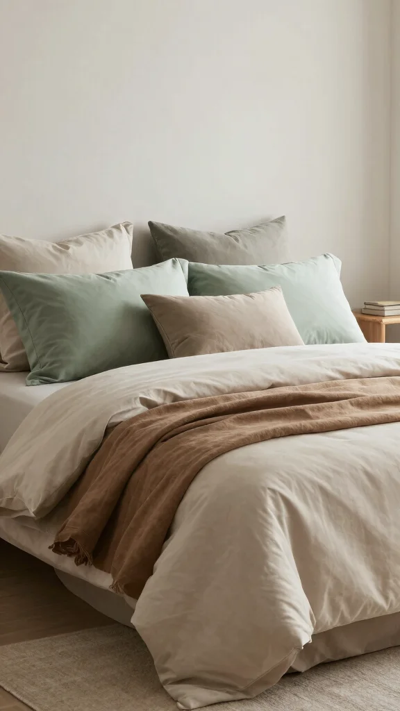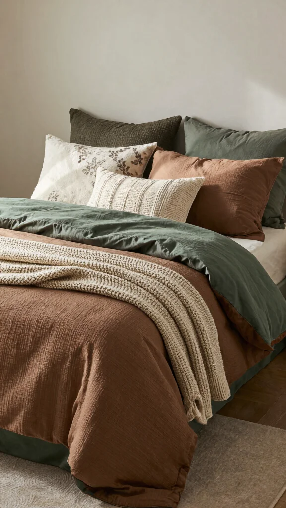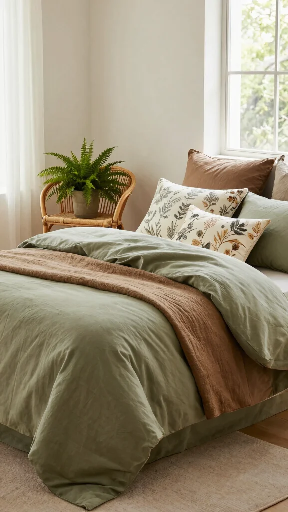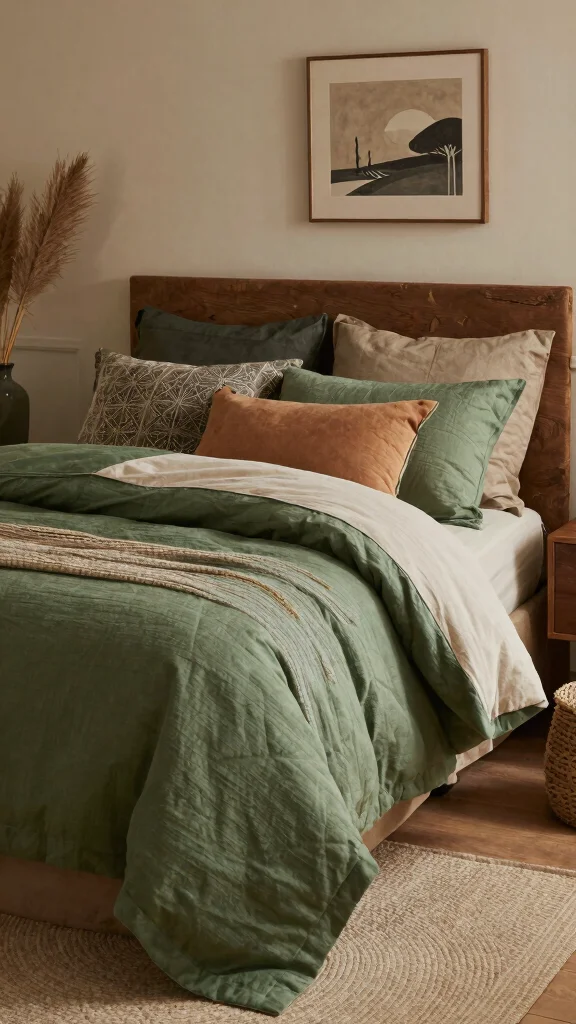 Begin with neutral bases (beige, warm gray) and layer in greens and browns through green and brown bedding. Mix textures like jute, flax, and wool to add depth without overwhelming the room. Stick to an earthy bedding styles approach and lean on natural color palettes to keep the look harmonious, calm, and inviting.