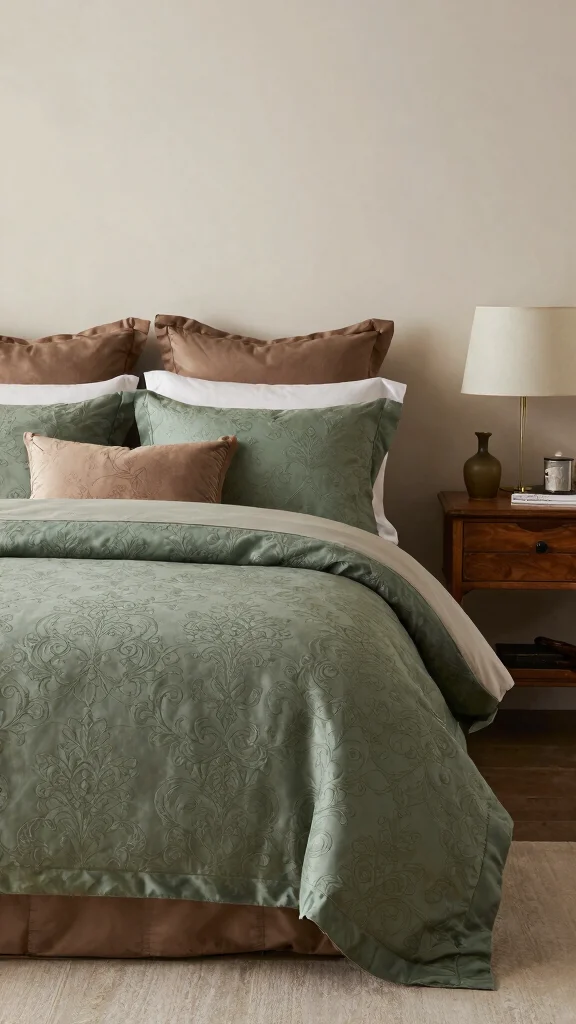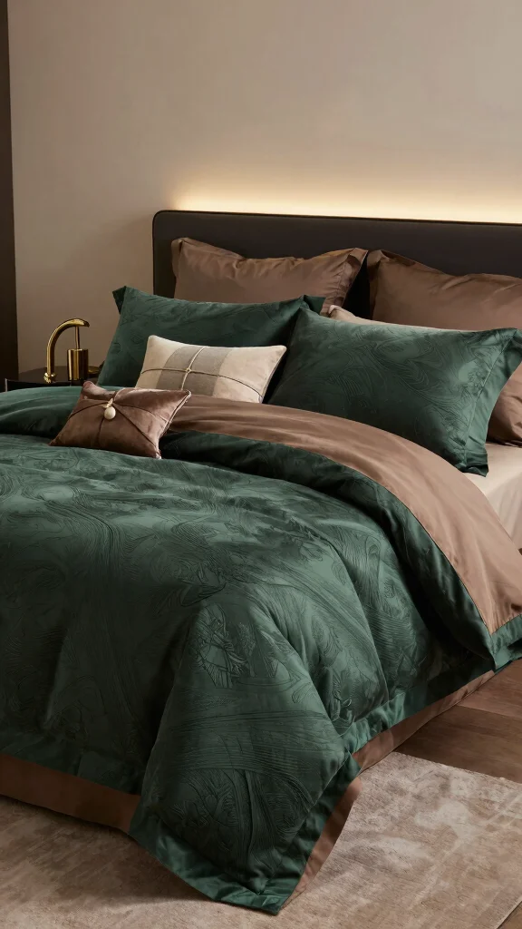 Fun fact: using 2-3 shades of green with rich browns instantly signals sophistication in green and brown bedding, boosting perceived elegance by about 30%. Layer luxurious throws and decorative pillows for a refined, inviting look that still feels comfy.