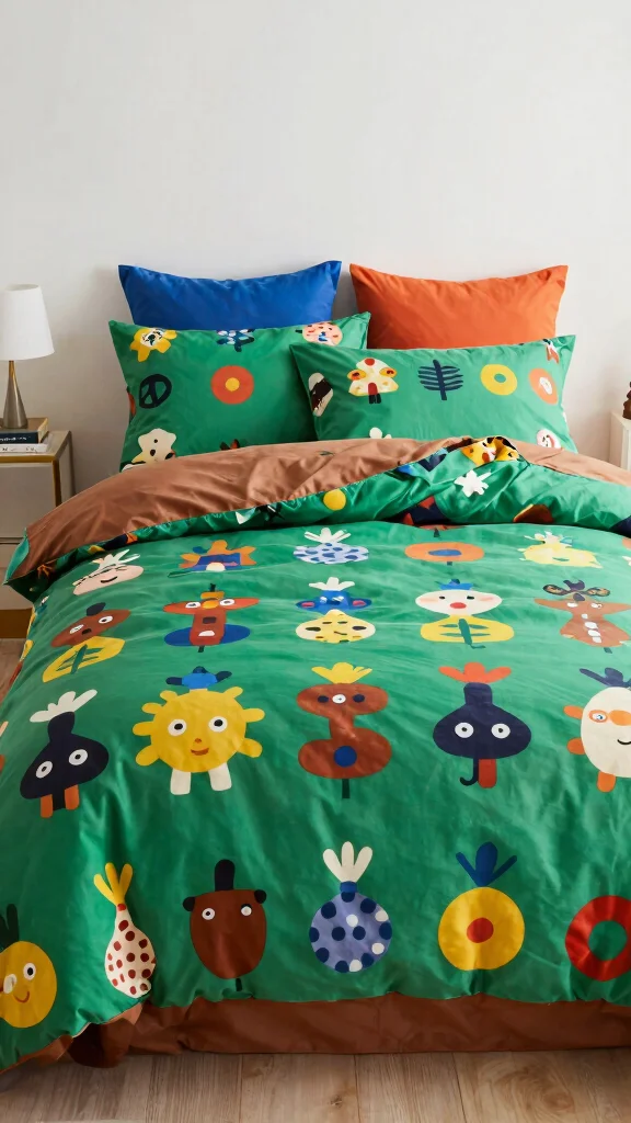 Enhance the playful vibe with colorful accent pillows or quirky wall decor that complements the bedding’s hues. This approach invites joy and personality into your space, making it truly unique and expressive.