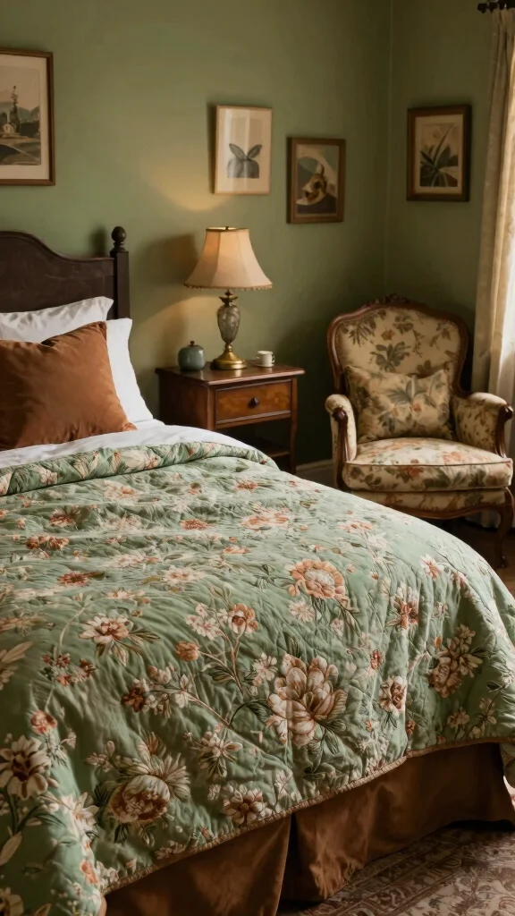 Fact: Vintage-style green and brown bedding can cut waste by up to 70% compared to fast-fashion options, while letting you mix muted florals and paisley for a timeless look. Pro tip: explore thrift shops for one-of-a-kind quilts that deepen the nostalgic vibe.