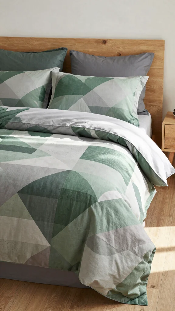Color-blocking is not just a fashion trend; it’s a fabulous option for bedding too! Choose a duvet cover that mixes deep green and soft grey patches for a striking visual effect. This design allows for creativity and can easily become a focal point in your bedroom.