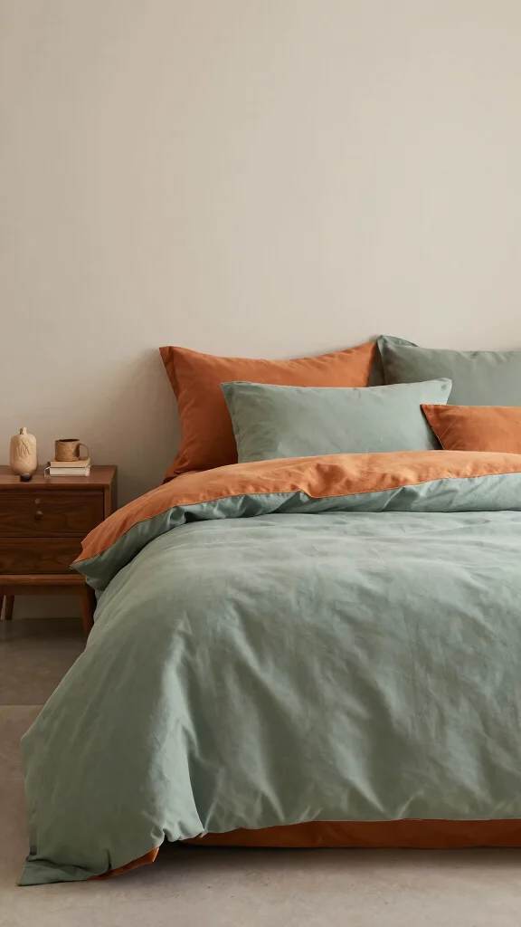 Opt for bedding made from organic materials in soothing shades of green and orange to create an eco-conscious space. This choice not only benefits the planet but also fosters a sense of wellness in your home. Look for soft organic cotton or bamboo options that feel luxurious and sustainable, giving your bedroom a tranquil vibe. Pairing these eco-friendly textiles with natural wood furniture enhances the serene atmosphere.