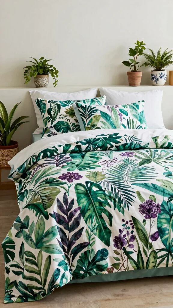 To fully embrace this look, balance bold floral prints with minimalist furniture for a refined aesthetic. Incorporate botanical wall art that complements the bedding, and use light-colored curtains to filter natural light into the room. Opt for eco-friendly materials like organic cotton for a sustainable choice.
