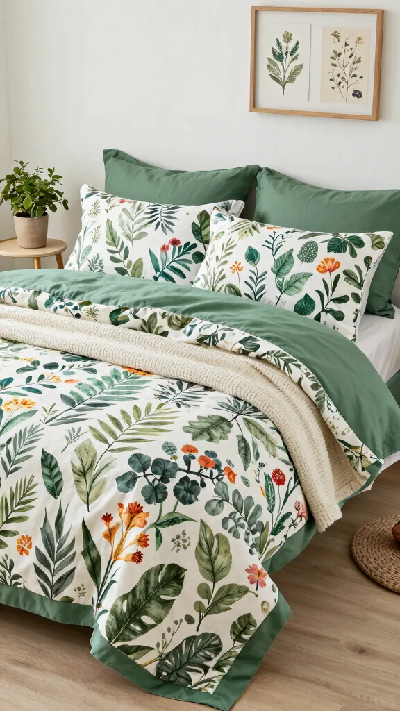 – Incorporate organic cotton duvet covers with vibrant botanical prints