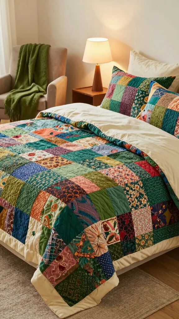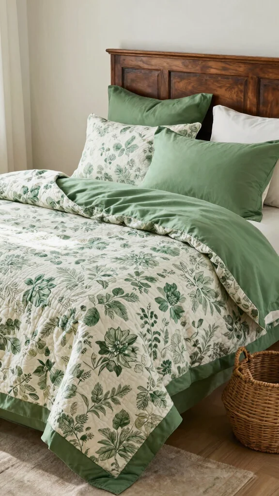 Quilts are versatile, serving both functional and decorative purposes, especially when showcasing striking green patterns. From floral designs to geometric shapes, a quilt can bring warmth and personality to your bedroom decor.