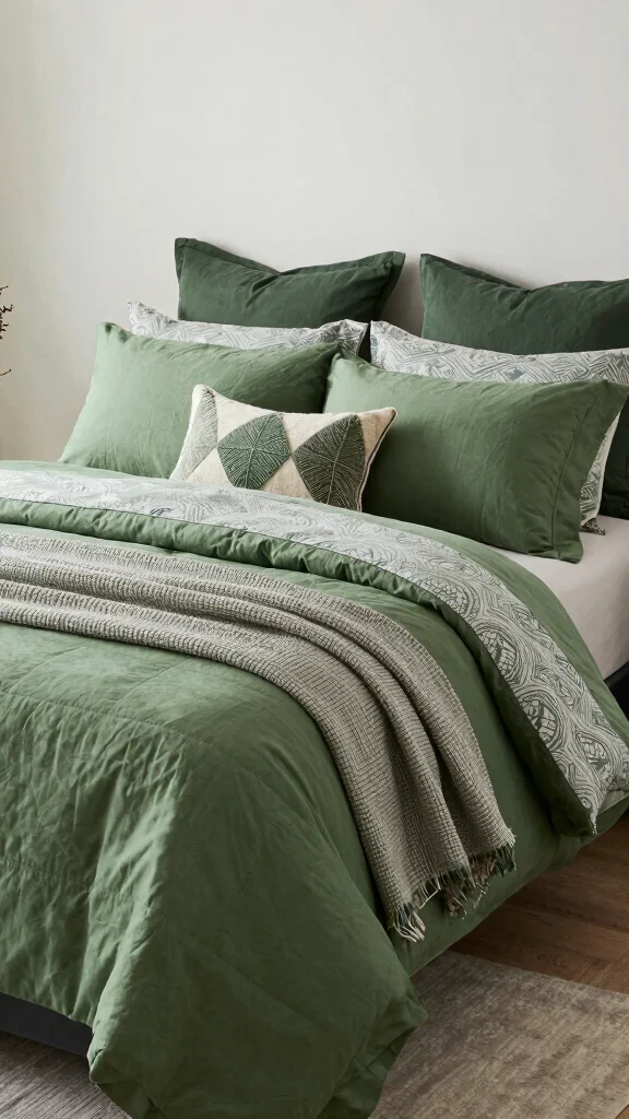 – Find practical tips on layering bedding to achieve both comfort and visual appeal in your green-themed sanctuary.