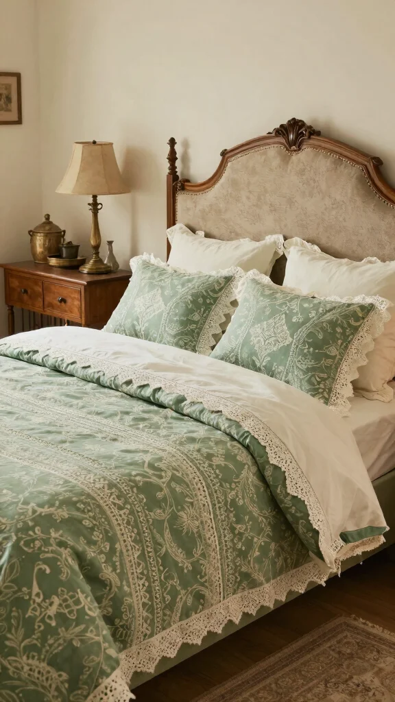 Seek out vintage green bedding to add unique character and sustainability to your decor.