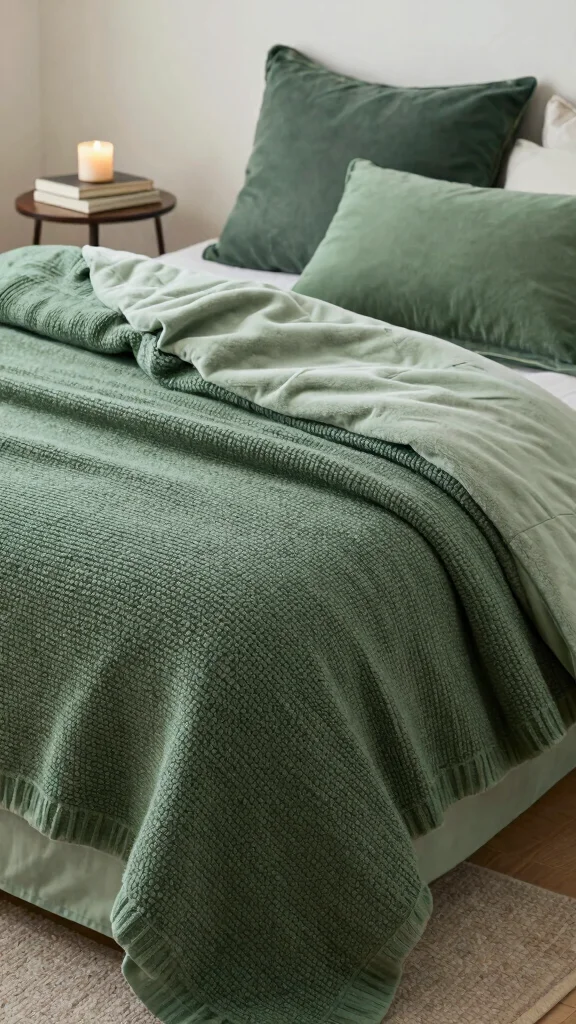 – Layer blankets in different green shades for contrast