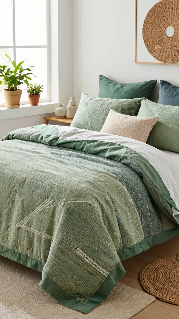 Linen blend comforters provide a luxurious touch to your bedding while remaining eco-conscious. Known for their durability and breathability, linen blends are perfect for all seasons. Opting for a comforter in a muted green hue introduces warmth that complements your decor without overwhelming it.