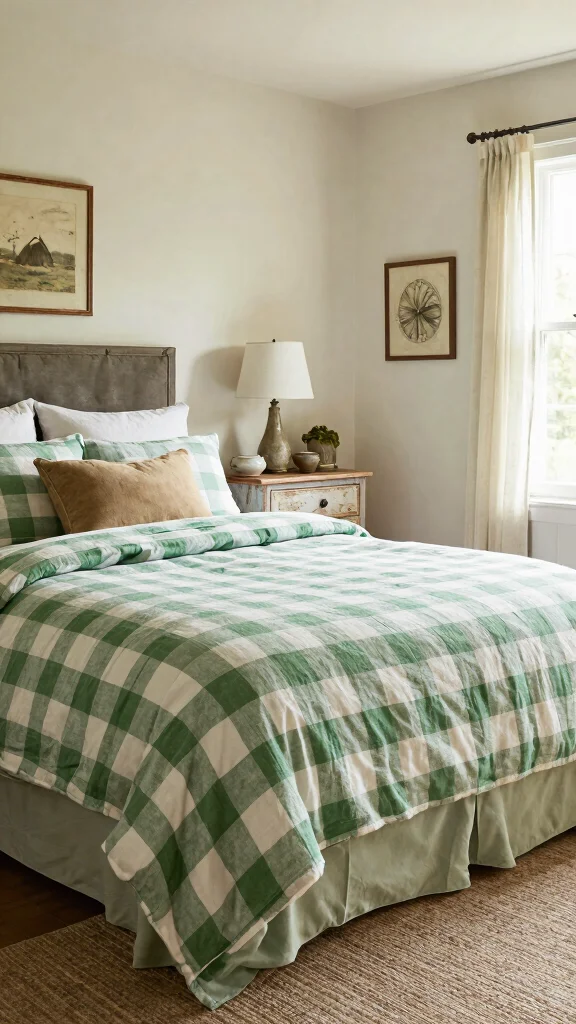 12. Farmhouse Charm with Green Checkered Bedding