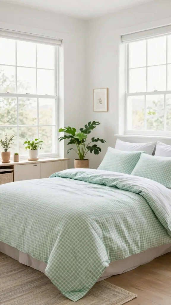 13. Brightening Up Spaces with Light Green Checkered Bedding