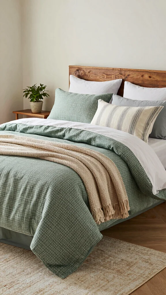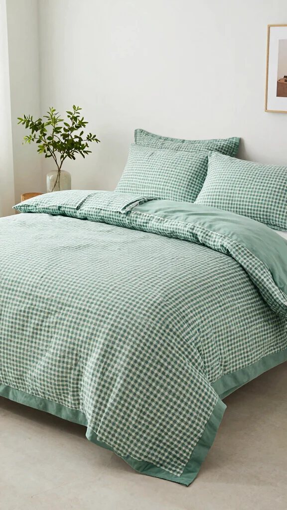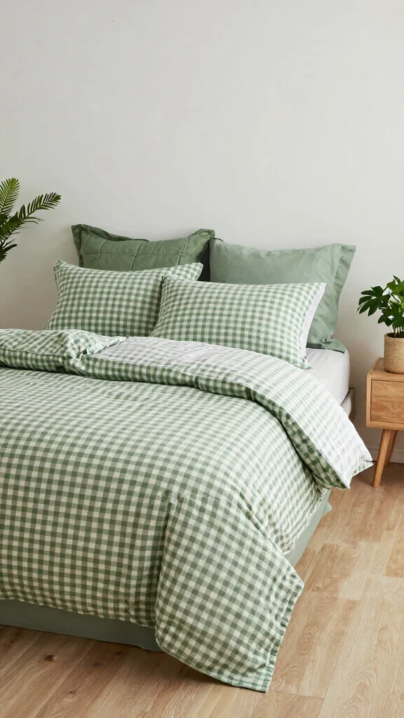 Start with a high-quality base: choose green checkered bedding in a breathable fabric like organic cotton or linen.