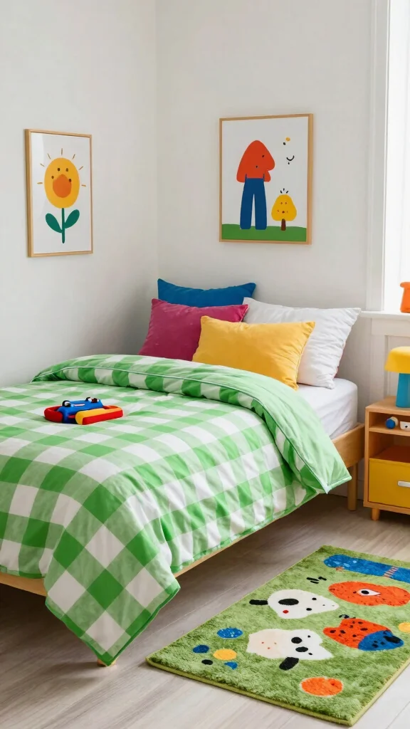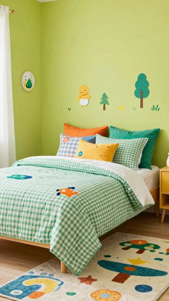 9. Playful Kids’ Room with Green Checkered Bedding