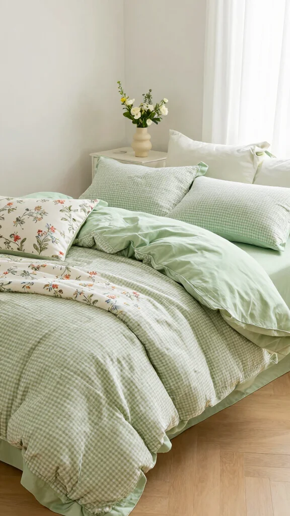 Light green checkered bedding can instantly brighten a room and create an uplifting atmosphere. This color choice is perfect for anyone wanting to cultivate a serene and refreshing environment. The gentle tones provide a delicate balance, making it suitable for both minimalist and cozy styles.