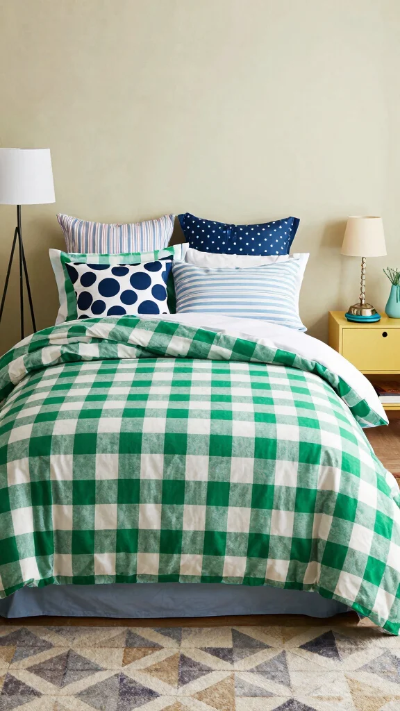Feel free to explore mixing patterns! Combining green checkered bedding with other designs, such as polka dots or geometric shapes, can create a lively and playful atmosphere. This modern approach celebrates diversity in design while keeping a cohesive color scheme.