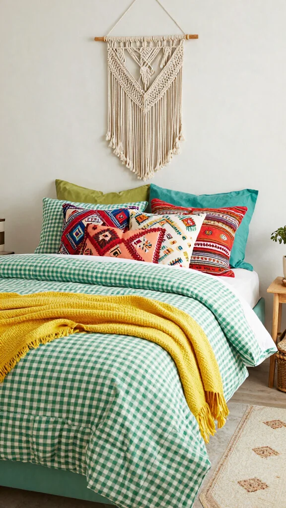 Layering your bedding adds depth and style. Think about adding throws, quilts, or different textured pillows that match or complement your green gingham. This approach not only looks great but keeps you cozy during colder nights. Choose accents that harmonize with the gingham pattern while still making a statement.