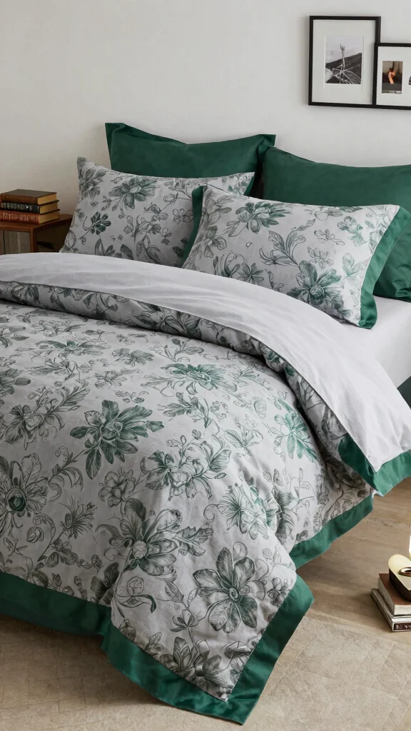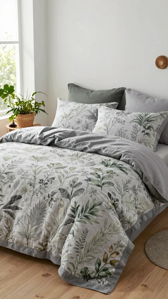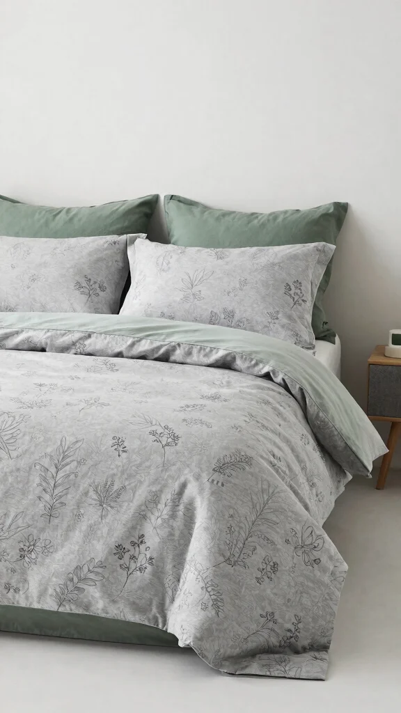 Look for prints that showcase leaves, flowers, or serene landscapes in grey and green to enhance your decor. Pair these designs with solid-colored sheets and throws to maintain focus on the bedding. Incorporating wooden or rattan accents in your bedroom can help tie the overall look together.