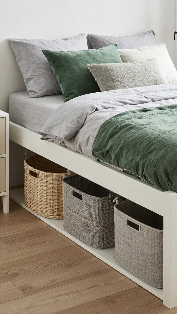 Under-bed storage options like roll-out bins or wooden boxes are perfect for hiding additional bedding items. Decorative baskets can double as stylish decor while keeping your room tidy. Incorporating ottomans that provide extra seating and storage can enhance functionality without compromising style.