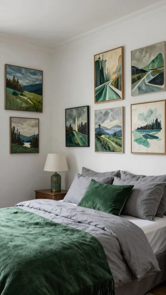 Artistic wall decor can significantly enhance the aesthetic of your grey and green bedding. Introduce artwork that echoes the colors found in your bedding, creating a cohesive look throughout your space. This not only ties the room together but also infuses personality and style into your decor.