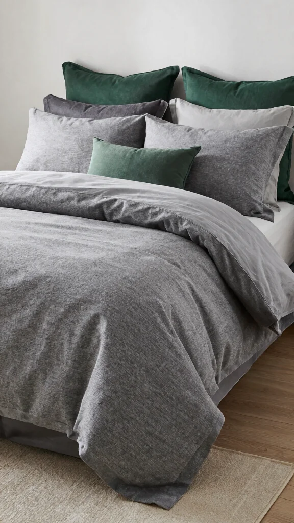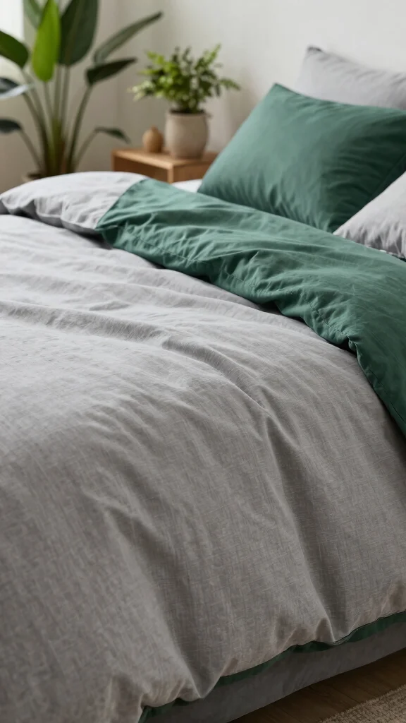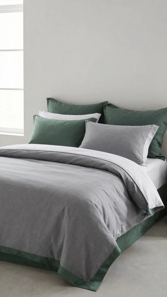 Grey and green bedding create a calm, versatile base for soft minimal decor. The grey and green bedding combo pairs a classic neutral with a nature-inspired touch, helping you achieve a neutral color palette that still feels fresh. For eco-friendly style, choose textiles like organic cotton, linen, or bamboo that are GOTS or OEKO-TEX certified. To keep it cozy, layer with textures: a chunky knit throw, a linen cover, and a solid grey duvet that lets green accents pop. Start with a solid grey duvet, add sage or olive pillow shams, and finish with natural wood furniture and a simple rug for a cohesive look.