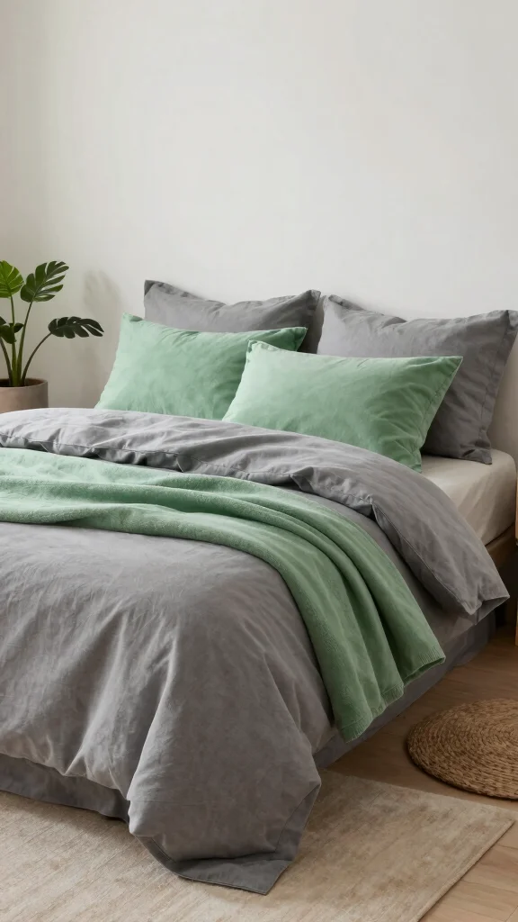 – Discover unique bedding styles that blend grey and green, creating a soft, minimal aesthetic that feels inviting.