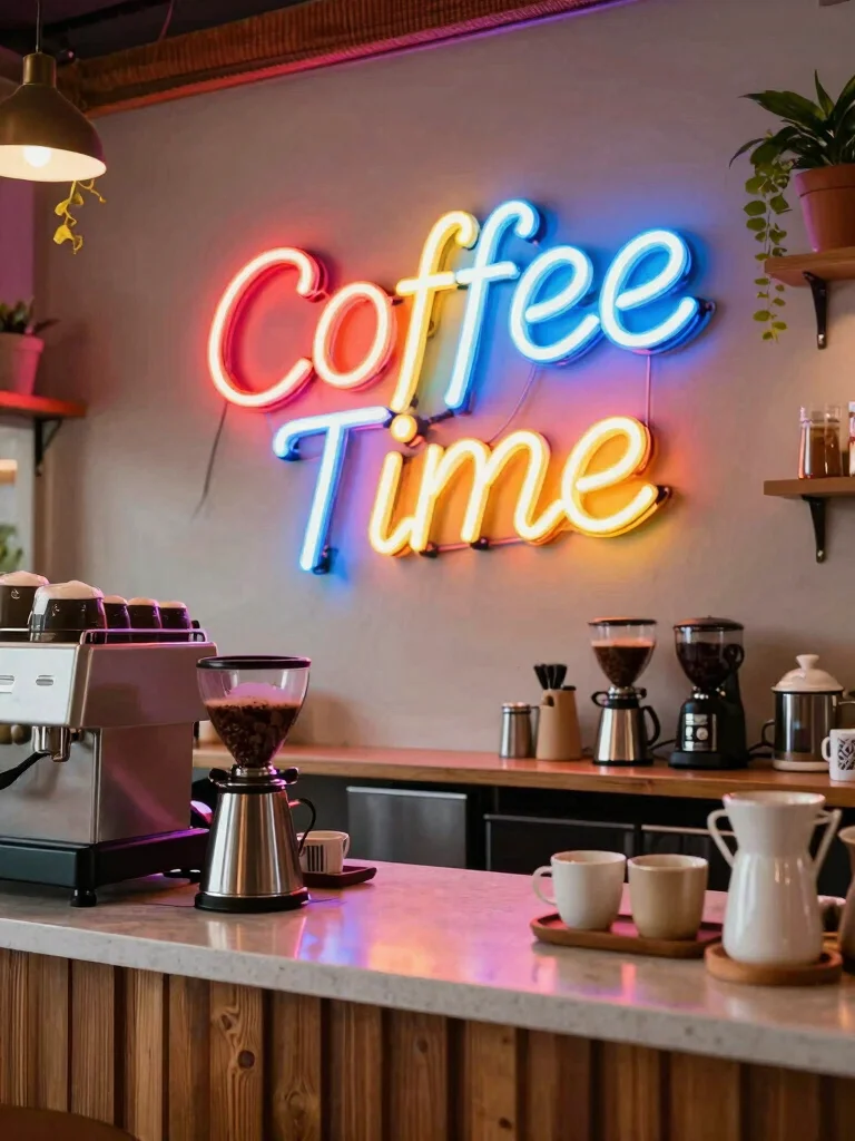 Neon signs not only illuminate your space but also add an element of fun, ensuring your coffee corner is as vibrant as your brews.