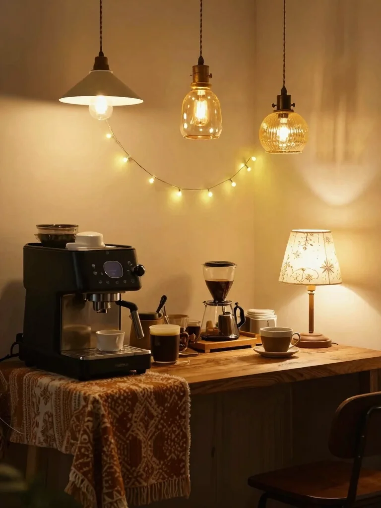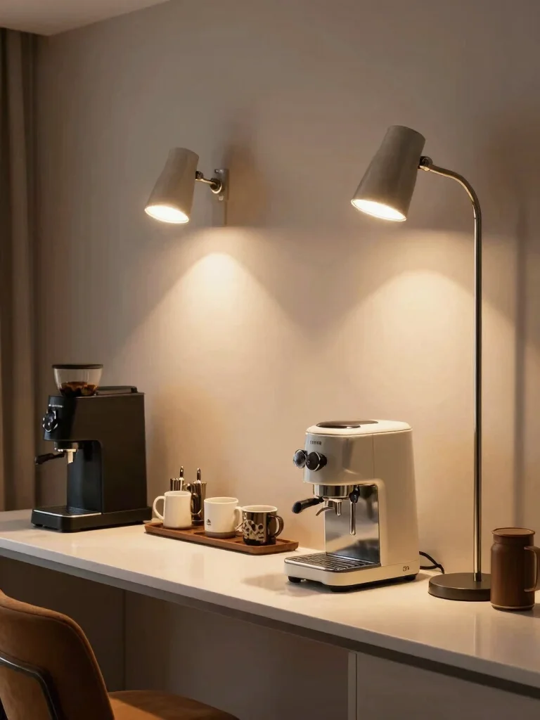 Question: What is the best approach to lighting a home coffee station to create a cozy ambiance?
