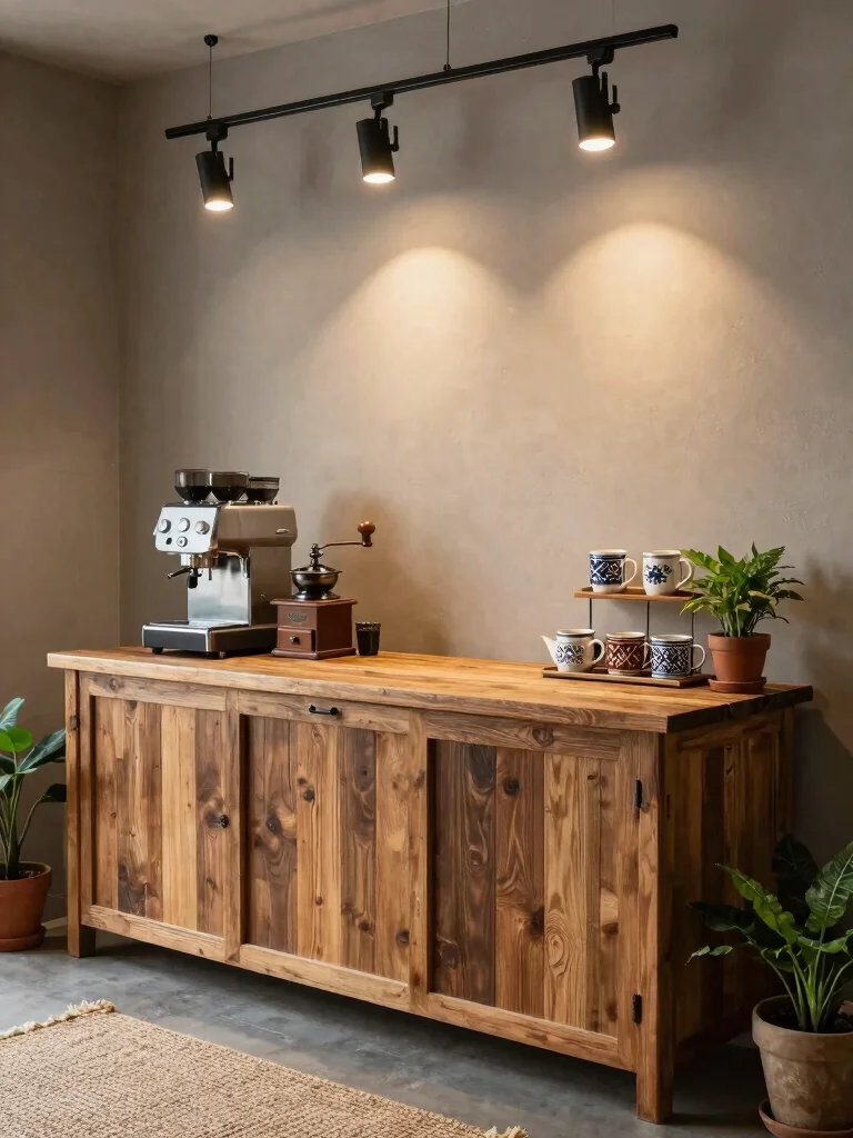 Love an industrial vibe? Rustic track lighting is a perfect fit for your coffee station! This style allows you to highlight different areas, making it both functional and stylish. Choose fixtures with a weathered finish to complement your rustic decor.