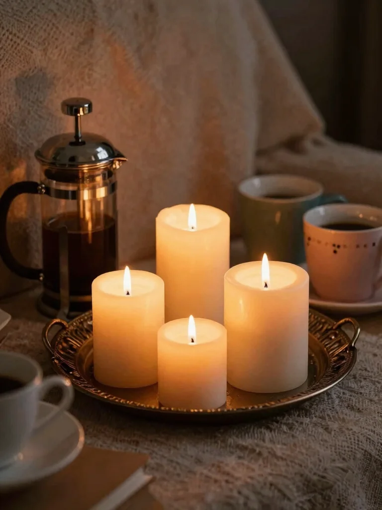 – Place candles on decorative trays for a curated look.