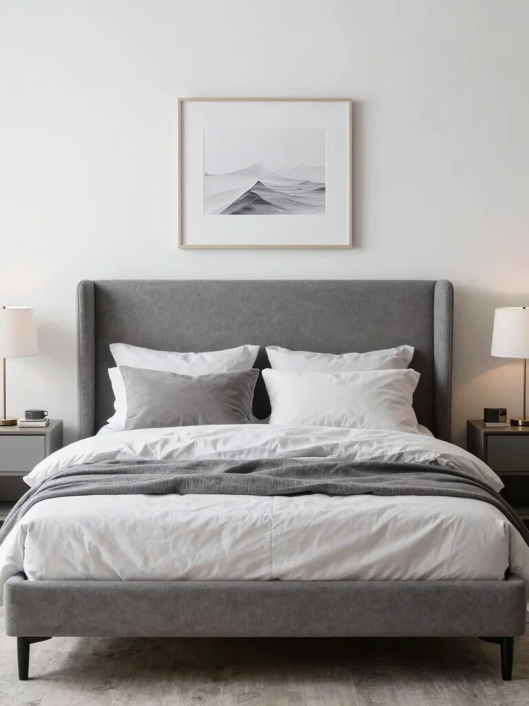 Invest in a stylish headboard to serve as the centerpiece of your bed, enhancing the overall design.
