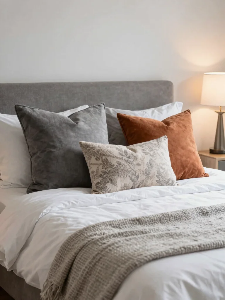 Combine different fabrics like cotton, linen, and velvet for a cozy, hotel-like feel in your bed setup.