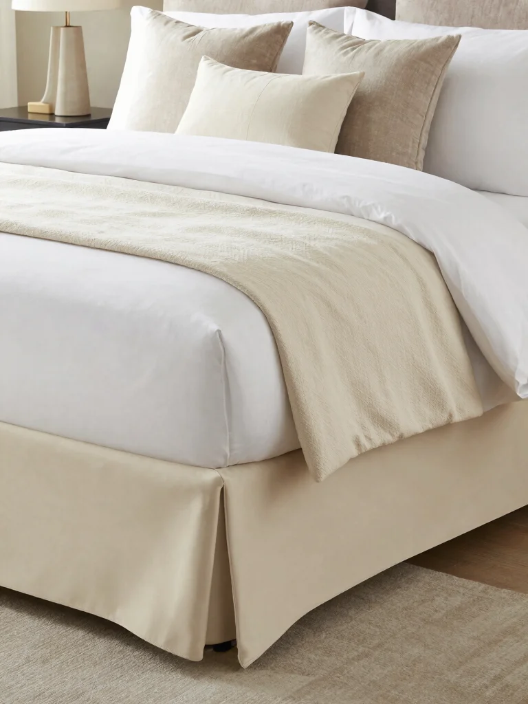 A bedskirt can dramatically enhance your bedroom’s polished look while conveniently hiding under-bed storage. It adds an elegant touch that completes your hotel-style decor.
