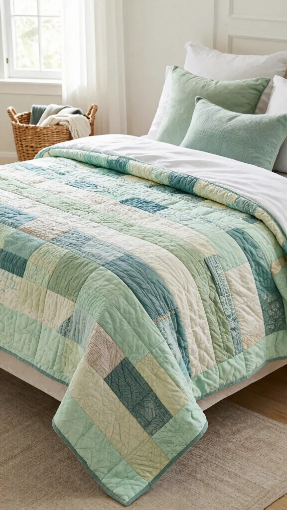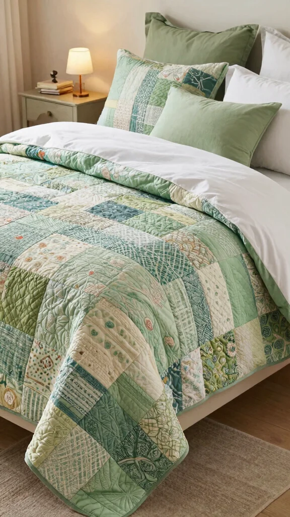 Celebrate creativity with quilts made from upcycled fabrics. These unique pieces contribute to sustainability while bringing warmth and charm to your bedroom decor. A light green quilt can be a stunning addition, showcasing various textures and patterns that tell a story.