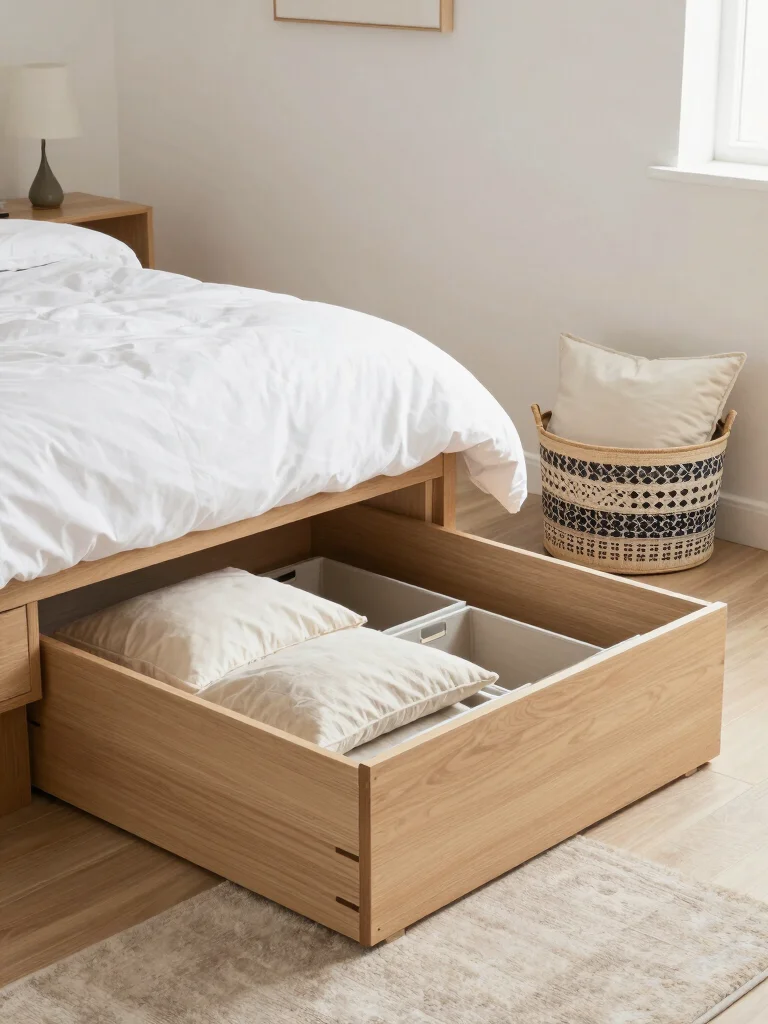Use hidden storage under the bed or simple organizers to reduce visual clutter.