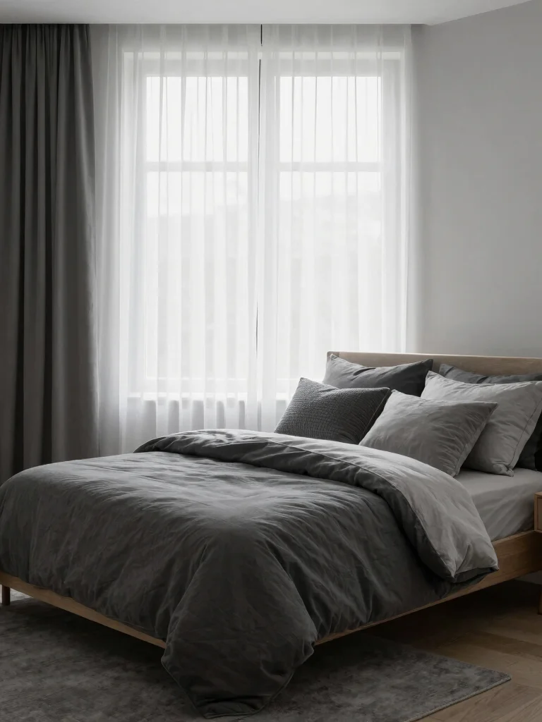 Natural linen is an exceptional fabric choice for a minimalist bedroom, offering both breathability and durability. Its unique texture and timeless look seamlessly fit into a calming decor palette. Linen comes in earthy tones, enhancing the room’s overall tranquility while providing a relaxed aesthetic.