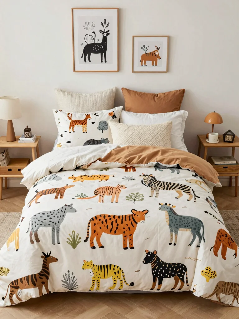 Whimsical Animal Prints bring personality to your bed without sacrificing chic polish. Pair a bold duvet with solid sheets and textured pillows, then keep colors muted so the print shines. With a little balance, your mix and match bedding patterns feel effortless and stylish.
