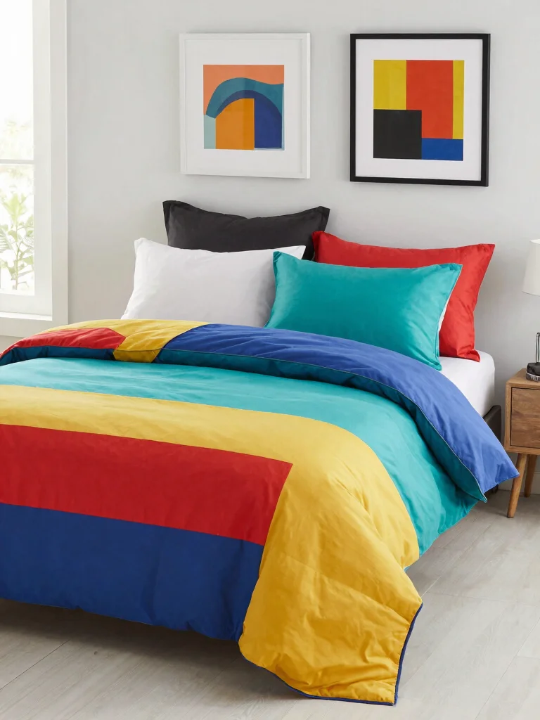 For a fresh and modern approach, try mixing color blocks in your bedding. A duvet cover with bold blocks of color can be paired with solid sheets and pillows in complementary shades. This combination injects energy into your bedroom while maintaining a chic appearance, ideal for any contemporary space.
