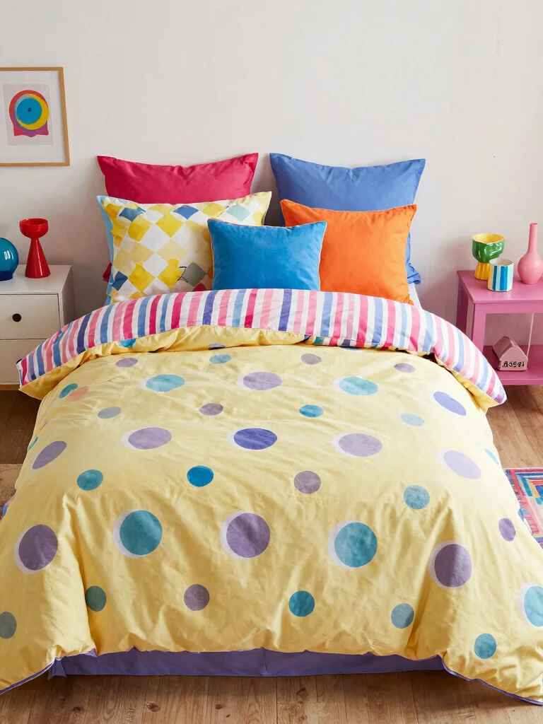 Revive a playful retro vibe by mixing bold polka dots with dynamic stripes in your bedding. A polka dot duvet cover can be beautifully paired with striped sheets or throw pillows, creating a lively design that injects fun into your space. Opt for contrasting colors like classic black and white or bright primary hues to amplify the retro feel.